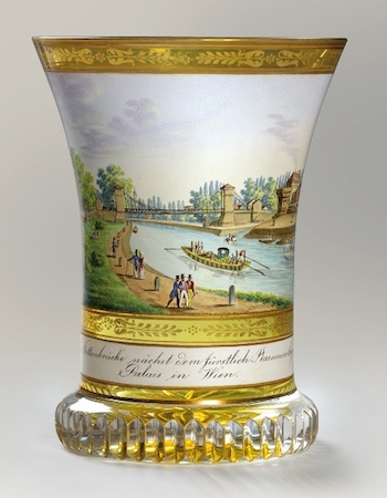 ![]() | Pohár Ranftbecher / malíř: Anton Kothgasser / 1820–30 malované a zlacené sklo / výška 12,5 cm cena: 254 100 Kč / Adolf Loos Apartment and Gallery 22. 1. 2014 |