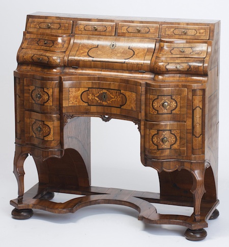 ![]() | Barokní psací stůl / Čechy, 1850–75 dřevo, ořechová dýha / 104 x 101 x 44 cm cena: 144 000 Kč / Dorotheum 24. 5. 2014 |