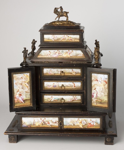 ![]() | Šperkovnice / Vídeň, kolem 1880 dřevo, smatlové destičky / 35 x 30 x 24,5 cm cena: 180 000 Kč / Dorotheum 24. 5. 2014 |