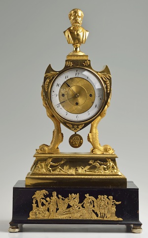 ![]() | Stolní empírové hodiny / 1820 zlacený bronz, černěné hruškové dřevo, alabastr, čtvrťové bití, hrací strojek / 51 x 29 x 16 cm cena: 272 800 Kč / Arthouse Hejtmánek 22. 5. 2014 |