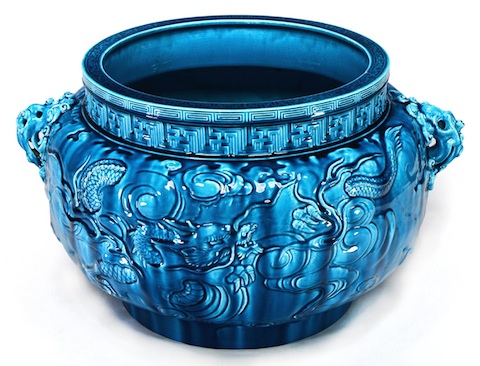 ![]() | Dekorativní mísa / modelér: Joseph-Théodore Deck / 1880–90 / keramika s tyrky-sovou glazurou / výška: 32 cm cena: 129 800 Kč / Zezula 12. 4. 2014 |