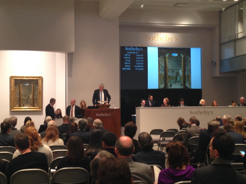 Výsledky konkurenční Sotheby’s však byly nesrovnatelně zdařilejší. Nejlépe dopadla první část aukce starého umění, kdy kupci zaplatili více než 57 milionů dolarů za 105 položek. Holandský přístav Willema van de Veldeho se prodal za 5,429 milionu dolarů (odhad 2–3 mil.), druhou nejdražší položkou a zároveň autorským rekordem se stal Pantheon Giovanni Paniniho s cenou 5,317 milionu dolarů (odhad 3–5 mil.). Boj mezi rusky a anglicky hovořícím klientem, kteří dražili po telefonu, se strhl o nově objevenou olejovou studii Salisburské katedrály od Johna Constabla. Konečná cena 5,2 milionu dolarů nakonec odhady přesáhla téměř dvojnásobně.