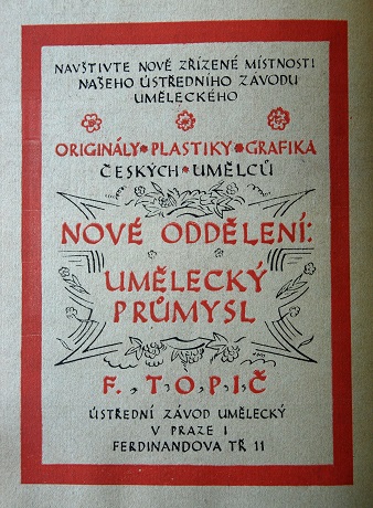 V zimě roku 1921, v čase krátké poválečné konjunktury bylo otevřeno Umělecko-průmyslové oddělení v prvním patře vlastní budovy, kde byly nabízeny výrobky výtvarných družstev Artělu, Pražských uměleckých dílen, Zádruhy, diletujících soukromníků a sklářských firem, doplněné předměty podle návrhu českých, slovenských a francouzských výtvarníků. Příkladem mohou být šperky z rohoviny a kosti podle návrhů Jana Zrzavého nebo textilní kompozice Raimonda Duncana. Prodej a prezentace předmětů užitého a dekoračního umění měly zároveň osvětový charakter spojený s hledáním moderního národního výrazu v této oblasti. Tyto aktivity byly doprovázeny vysvětlujícími a propagačními texty ve vlastních tiskovinách doprovázené bohatou fotografickou dokumentací.
