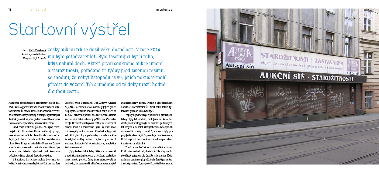 „Důvodů pro to je několik – charakter loňské nabídky, jistá nasycenost trhu v segmentu milionových obrazů, kde se až na výjimky opakují stále ta stejná jména, rozšiřování sběratelského zájmu na jiná časová období než je klasická moderna i větší schopnost kupujících rozlišovat a oceňovat kvalitu. Značná cenová diferenciace mezi výjimečnými kusy či pracemi z nejlepšího autorova období na straně jedné a průměrnými díly na straně druhé je dnes samozřejmostí nejen u nejslavnějších jmen, ale i u vcelku marginálních autorů,“ uvádí v úvodním bilančním textu Ročenky ART+ šéfredaktor Art-Antiques Jan Skřivánek.