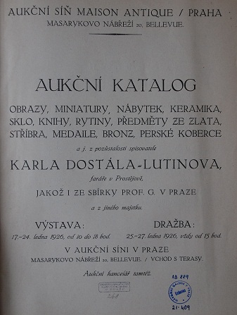 Významné dražby renomovaných pražských aukčních domů byly v meziválečném období společenskou událostí, kterou se zaujetím komentoval dobový tisk. V časopisech o výtvarném umění, sběratelství a v samotných aukčních katalozích byly publikovány texty zabývající se aukčním zákulisím, dokumentární hodnotou aukčních katalogů a osvětovou hodnotou uměleckých dražeb. Na stejných místech mohl čtenář nalézt satirické epigramy nebo poezii ze sběratelského a aukčního prostředí.